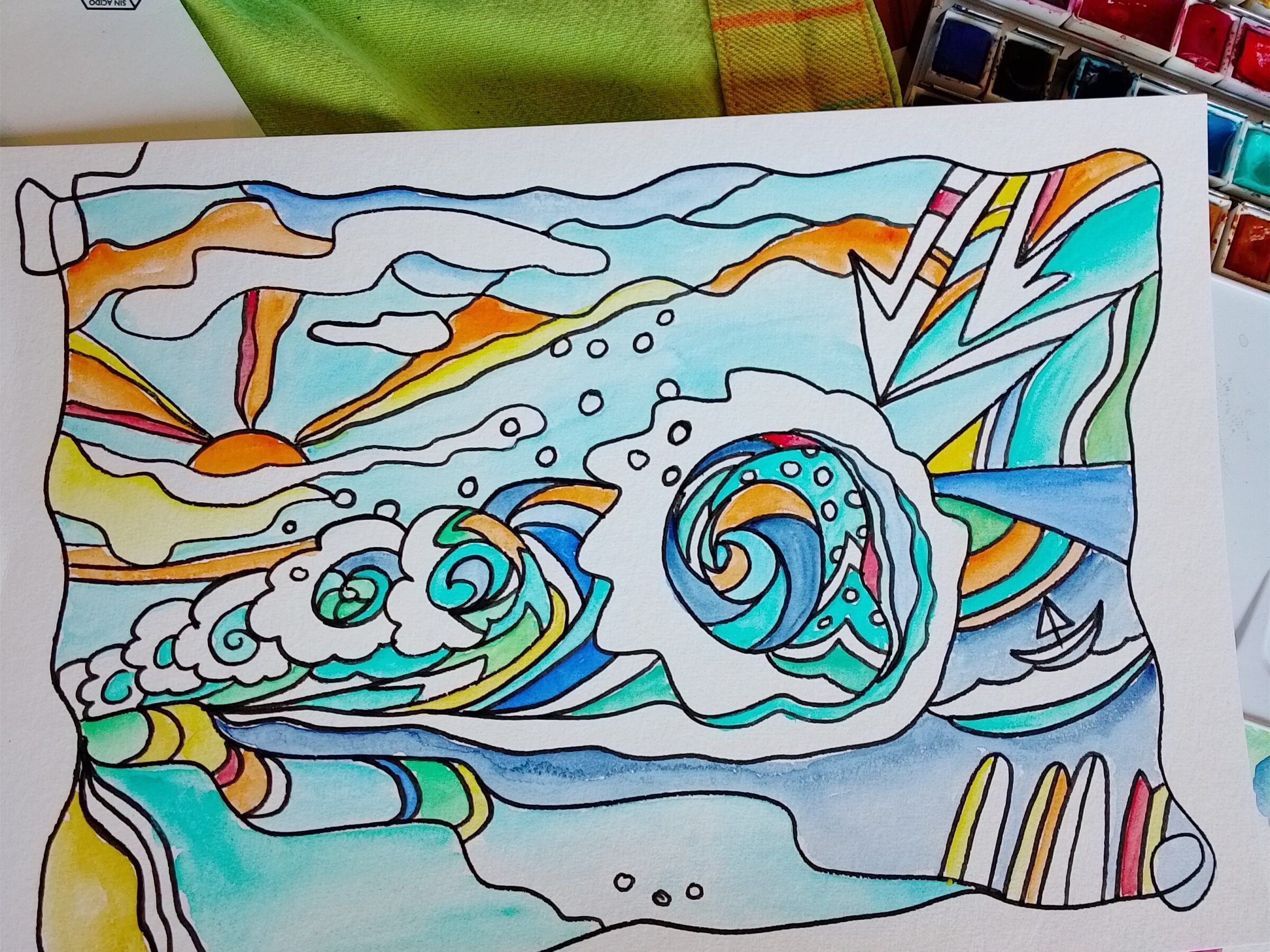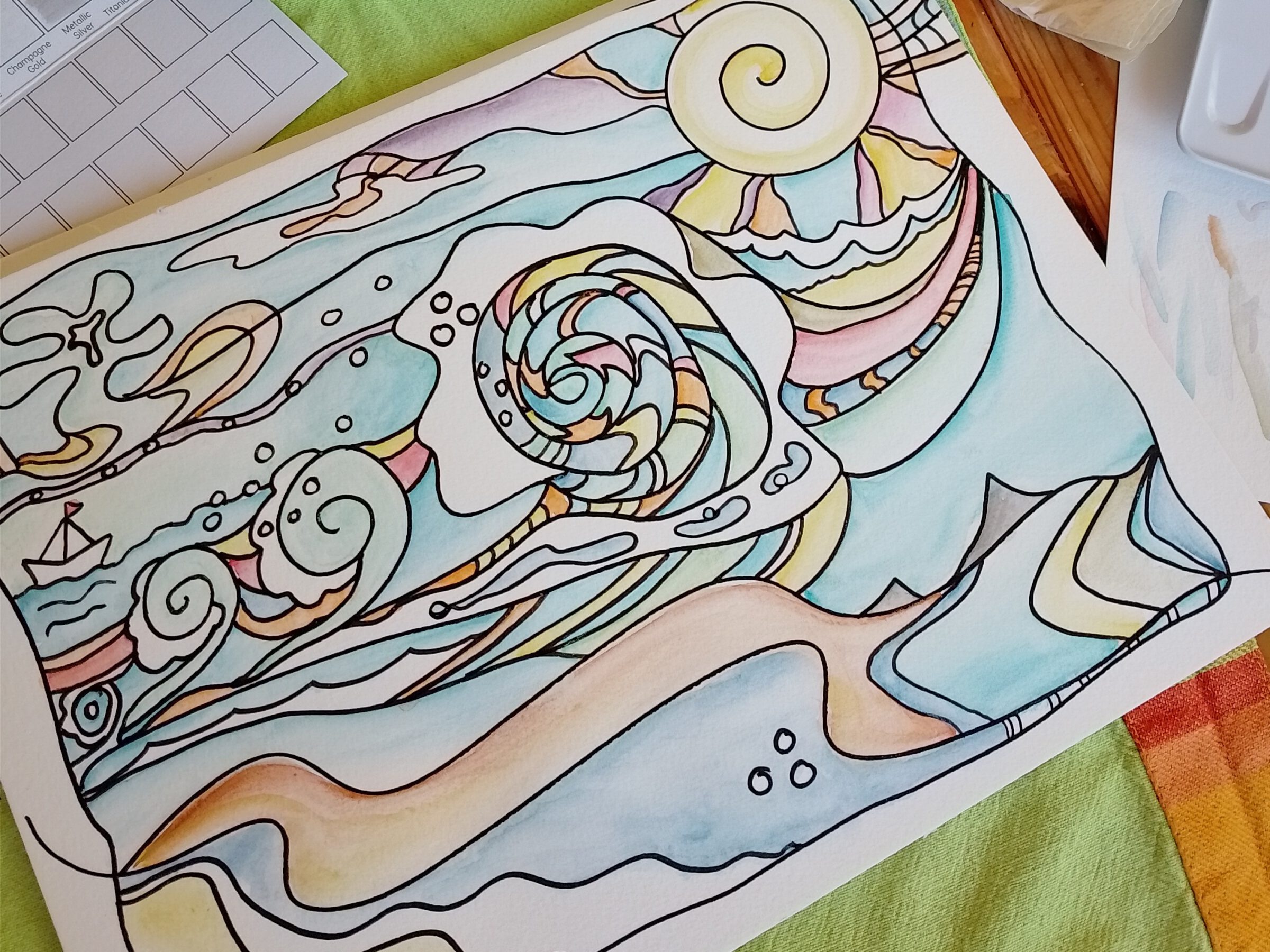beachlifeaquarell in metallic pastel 24x32cm